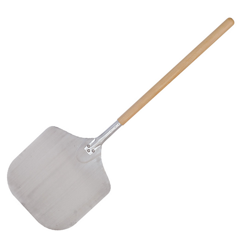 Lopata na pizzu hranatého tvaru, je vyrobena z hliníku a má dřevěnou rukojeť.