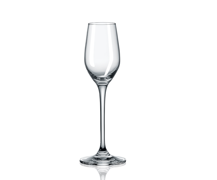 Sklenice na destiláty z řady Celebration od výrobce Rona. Je vyrobena z kvalitního křišťálového skla, které neobsahuje olovo, ani jiné toxické látky. Sklo je odolné proti poškrábání a má vysokou trvanlivost. Ústní okraj je jemně broušený. Sklenky disponují krásnou čirostí skla.