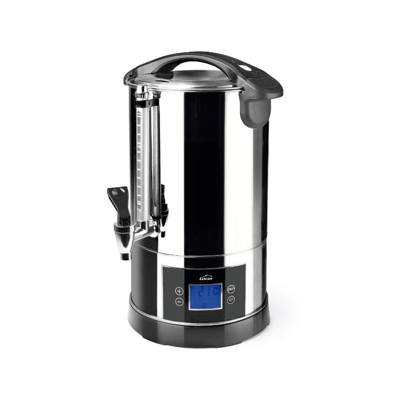 Výrobník horké vody o objemu 4l je skvělým doplňkem pro snídaňové bufety. Má jednoduché nastavení teploty, termostat s displejem a vodu ohřívá pomocí topné spirály, která je oddělená od nádoby a to výrazně prodlužuje životnost výrobku.